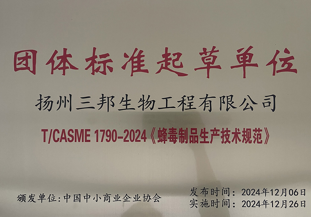 • 2024-03-02中國養蜂學會吳杰理事長及臺灣宜蘭大學蜂學專家陳裕文教授等考察揚州三邦生物工程有限公司